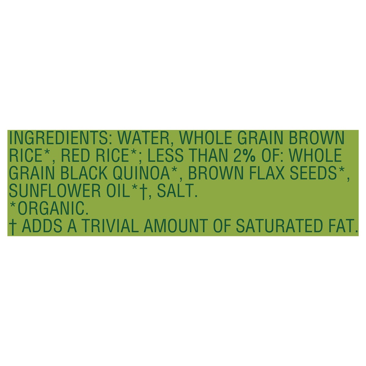 Water, Whole Grain Brown Rice (Organic), Red Rice (Organic), Less than 2% of: Whole Grain Black Quinoa (Organic), Brown Flaxseed (Organic), Sunflower Oil (Organic) (Adds a Trivial Amount of Saturated …