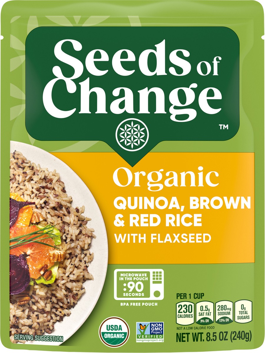 SEEDS OF CHANGE Organic Quinoa, Brown and Red Rice with Flaxseed is the perfect choice of instant rice whenever you're in the mood for a delectable fusion of nutty aroma, nutritious seeds and flavorfu…