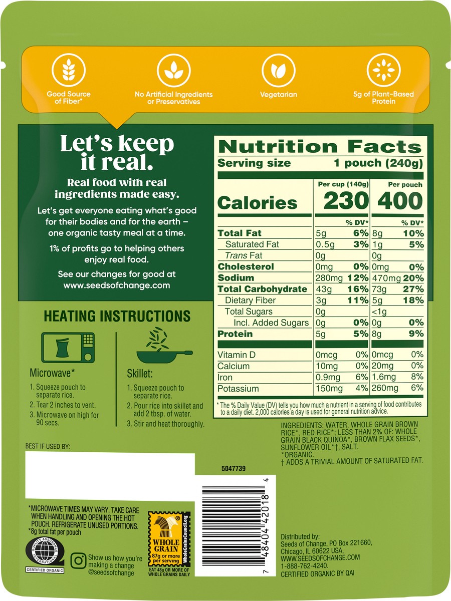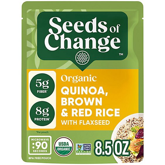 SEEDS OF CHANGE Organic Quinoa, Brown and Red Rice with Flaxseed is the perfect choice of instant rice whenever you're in the mood for a delectable fusion of nutty aroma, nutritious seeds and flavorfu…