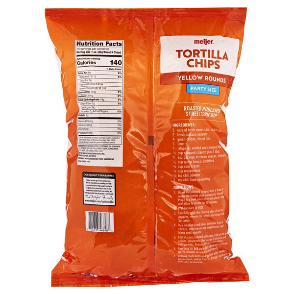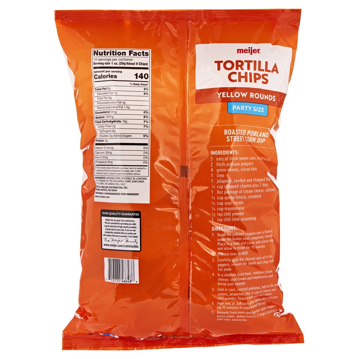 Whether used for nachos or to scoop up taco dip, Meijer Party Size Yellow Round Tortilla Chips are the perfect way to satisfy the salty cravings of any crowd. Made with 100 percent yellow corn, these …