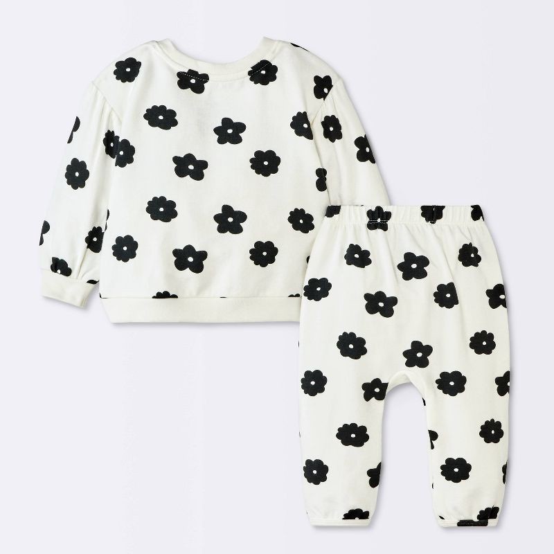 Baby Girls' 2pc Floral Modal French Terry Sweatshirt and Pants Set - Cloud Island™ Ivory 24M