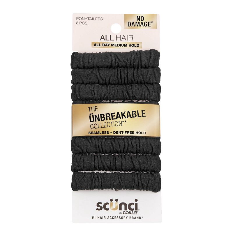 scunci scünci The Unbreakable Collection Ruched Comfy Elastic Hair Tie Ponytailers - Black - All Hair - 8pcs