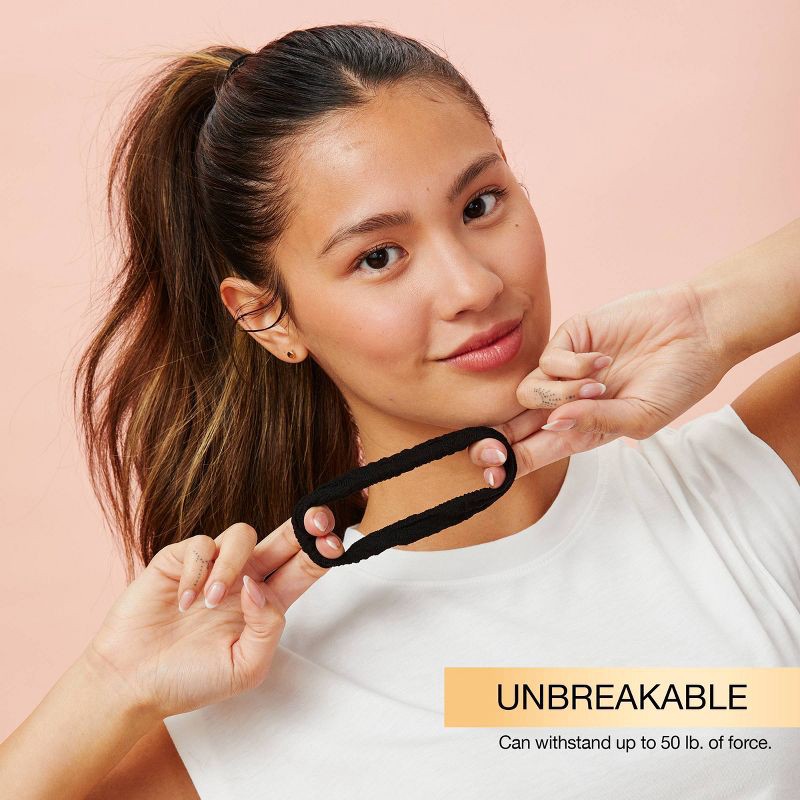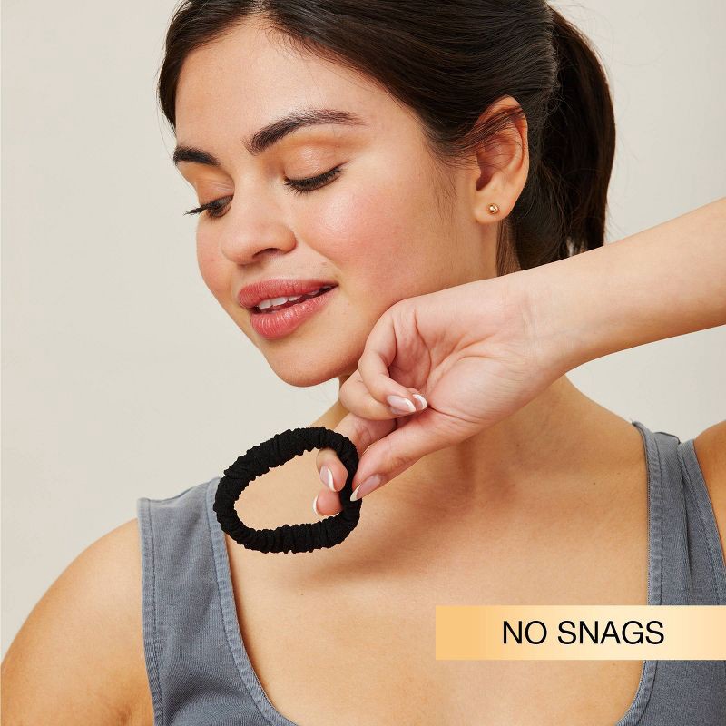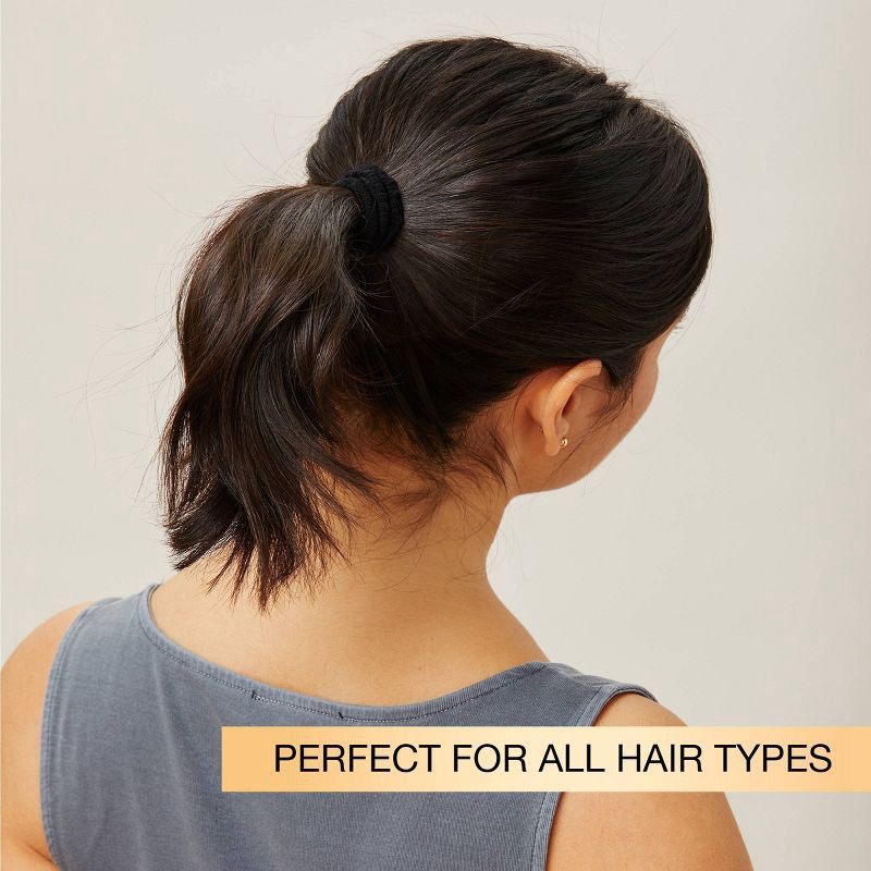 scünci's soft black fabric ponytailer elastics protect and secure all hair types with an extra-gentle touch and firm hold. Pull hair into a loose bun or ponytail for a comfortable all-day, all-night g…
