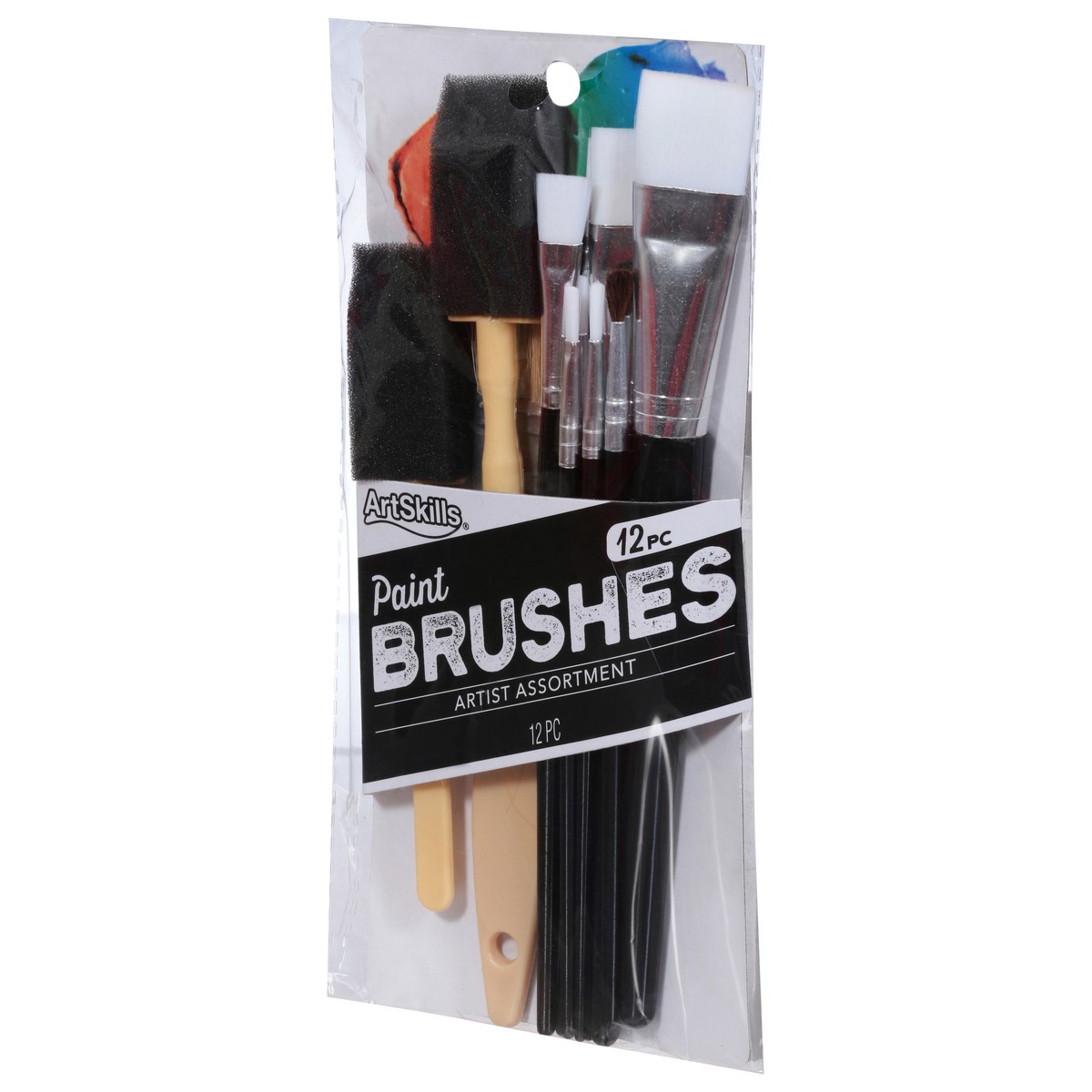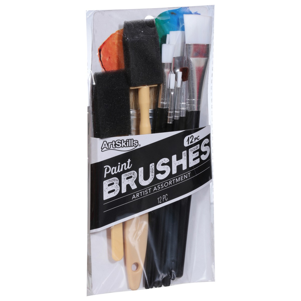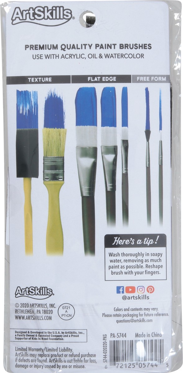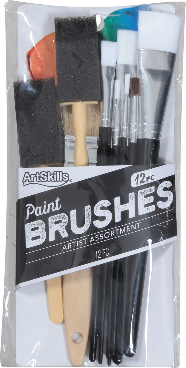 12 pc. Premium quality paint brushes. Use with acrylic, oil & watercolor. Texture. Flat edge. Free form. Colors and contents may vary. Please retain packaging for future reference.