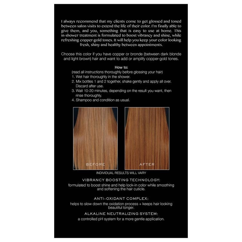 WHO NEEDS THIS:anyone with copper hair or anyone looking to add copper-gold tones and enhance shine.I always recommend that my clients come to get glossed and toned between salon visits to extend the …