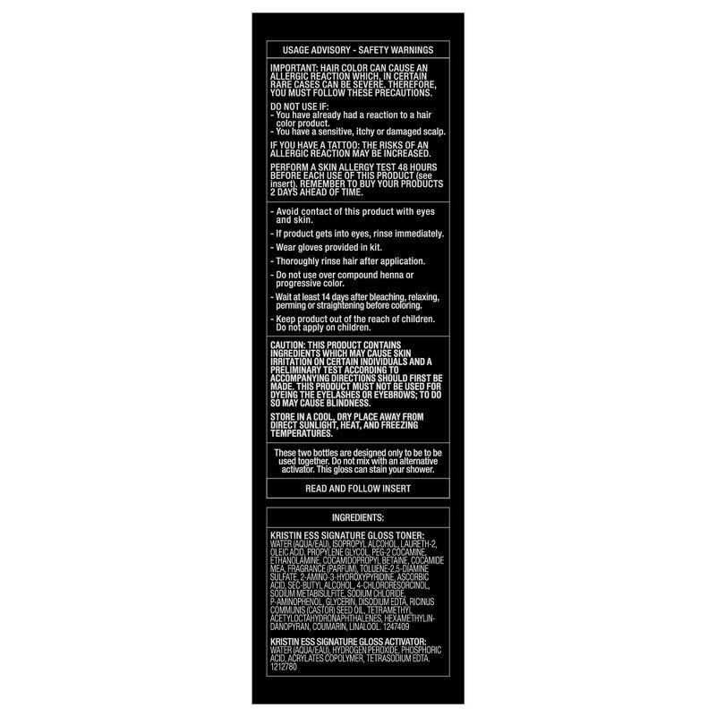 KRISTIN ESS SIGNATURE GLOSS TONER: WATER, ISOPROPYL ALCOHOL, SODIUM C14-16 OLEFIN SULFONATE, OLEYL ALCOHOL, PROPYLENE GLYCOL, LAURYL ALCOHOL, COCAMIDOPROPYL BETAINE, COCAMIDE MIPA, DECETH-4, PPG-2 BUT…