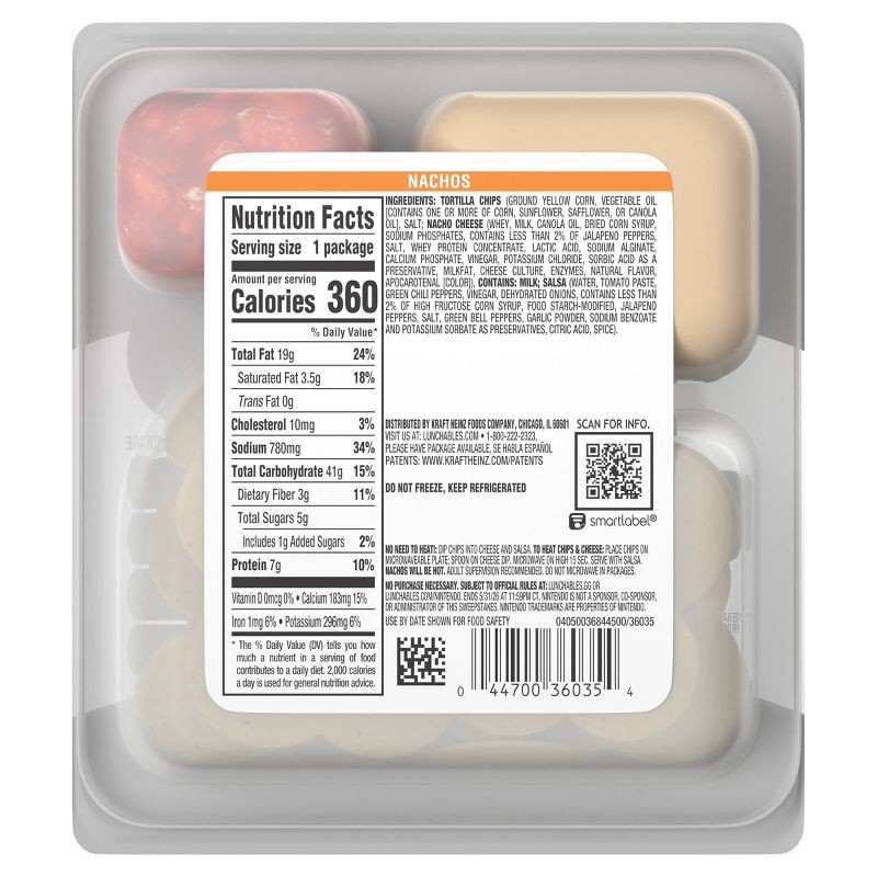 - One 4.4 oz pack of Lunchables Nachos with Cheese Dip and Salsa