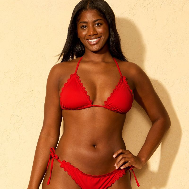 Women's Crochet Edge Triangle Bikini Top - Wild Fable™ Red XS