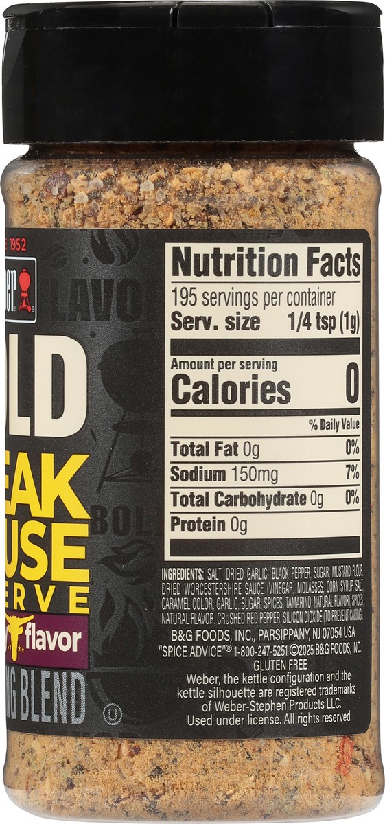 - One 6.9 ounce shaker bottle of Weber BOLD Steakhouse Reserve Seasoning