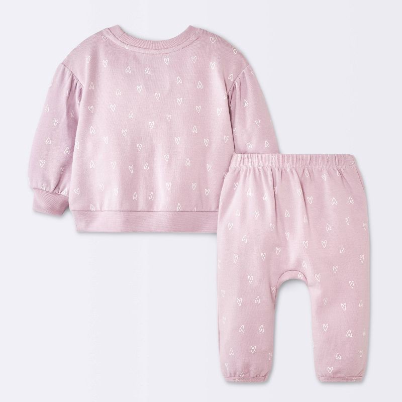 Baby Girls' 2pc Heart Graphic Modal French Terry Sweatshirt and Pants Set - Cloud Island™ Purple 6-9M