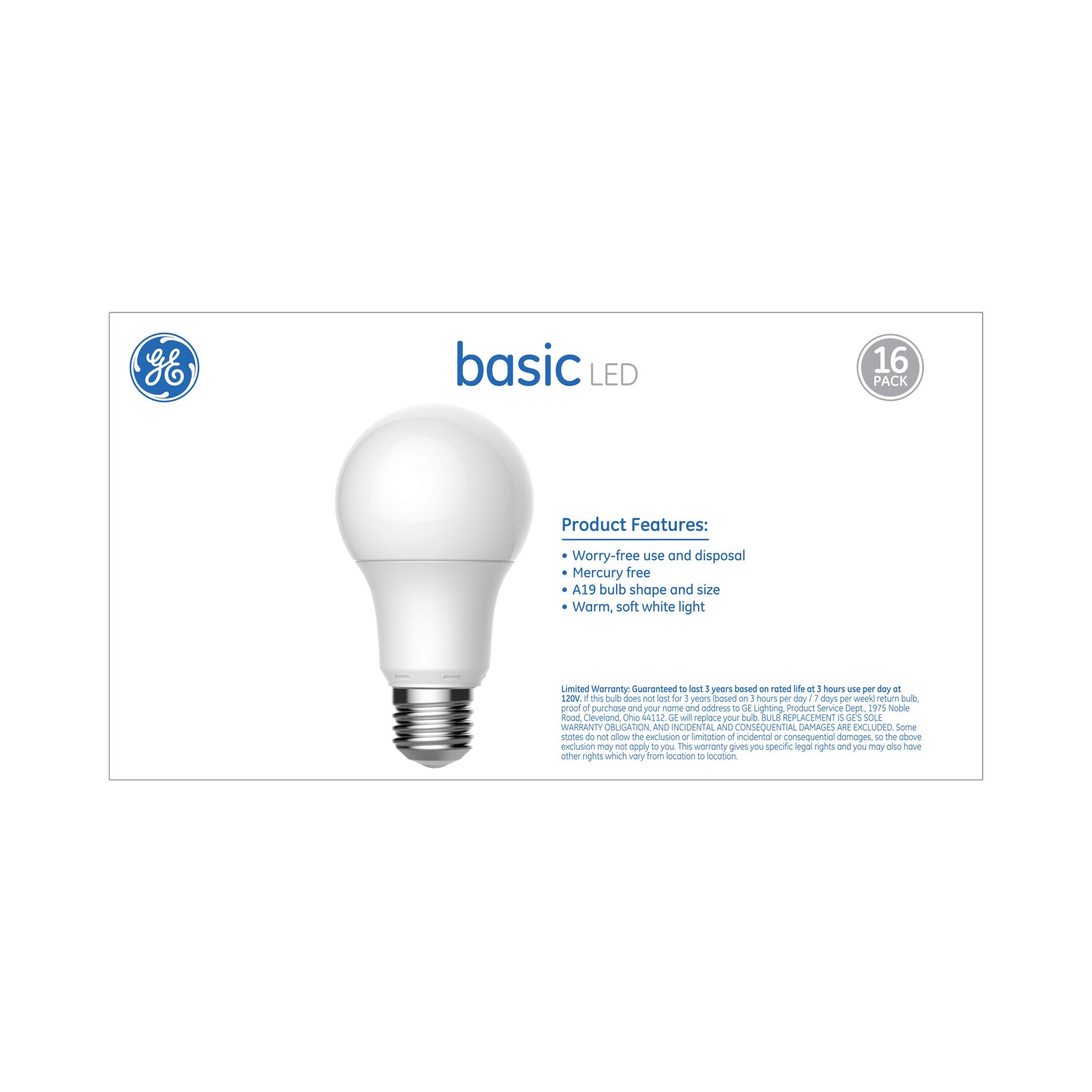 GE Basic 60 -Watt EQ A19 Soft white Medium screw base E26 LED General purpose Light Bulb 16 -Pack