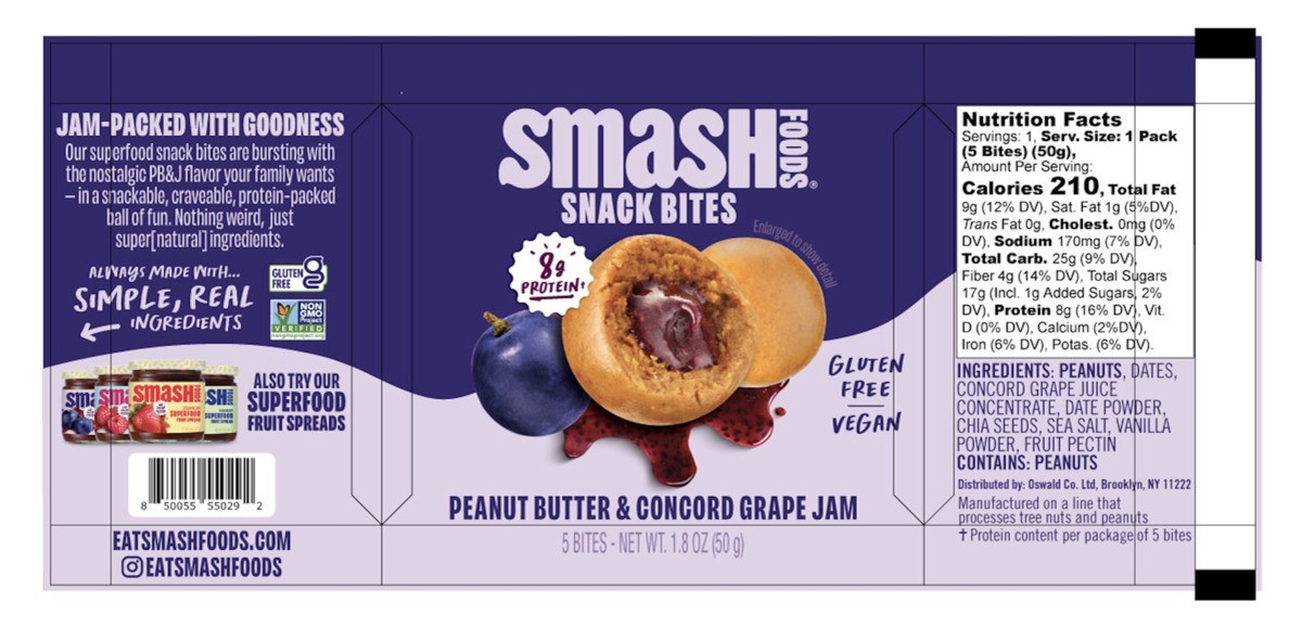 Smash Foods Peanut Butter & Concord Grape Jam Snack Bites