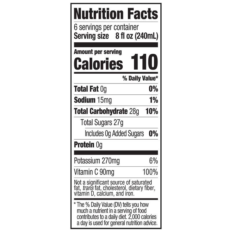 - This apple juice provides 100% of the recommended daily value of Vitamin C per 8 fl oz serving