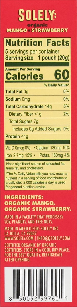 Solely Organic Mango & Strawberry Fruit Gummies - 5 - 0.7 oz Bags