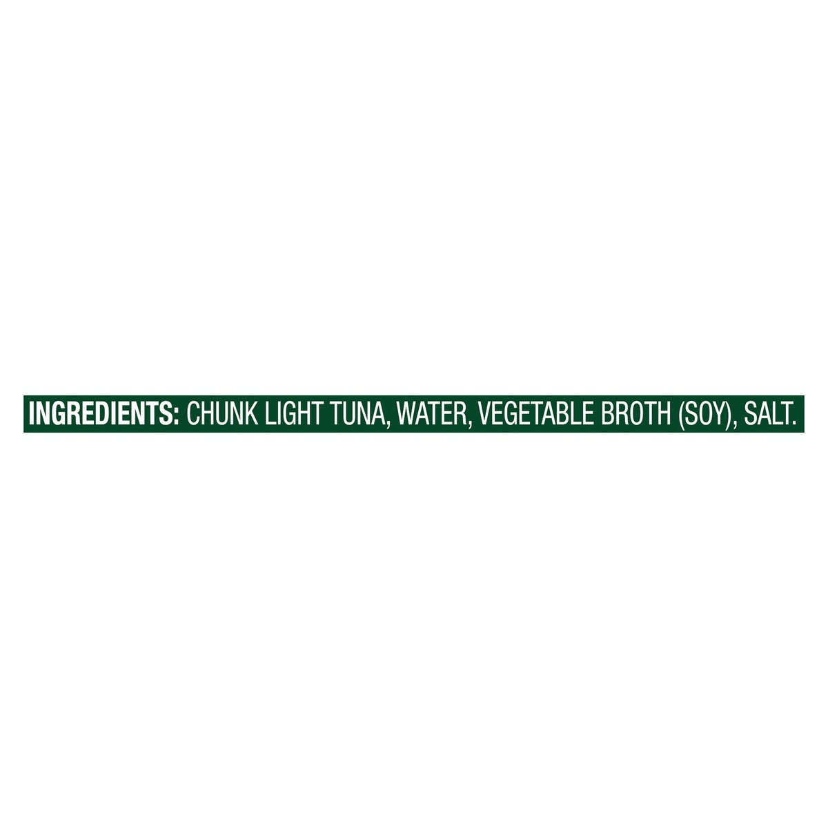 Chunks Light Tuna, Water, Vegetable Broth (Soy), Salt.