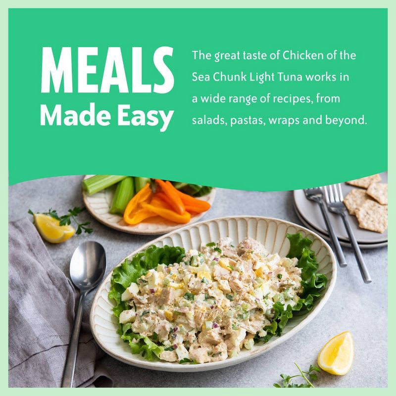 Chicken of the Sea chunk light tuna in water is packed in water for the freshest, best taste. It is high in protein and features heart-healthy omegas plus vitamins and minerals—perfect for keto and Me…
