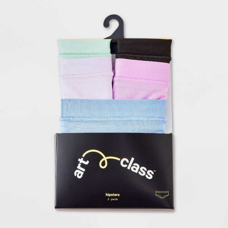 Soft, stretchy, and designed for all-day comfort, the Girls' 5pk Hipster Underwear from art class™ in Black is a great choice for easy movement every day. Made from a lightweight blend of recycled pol…