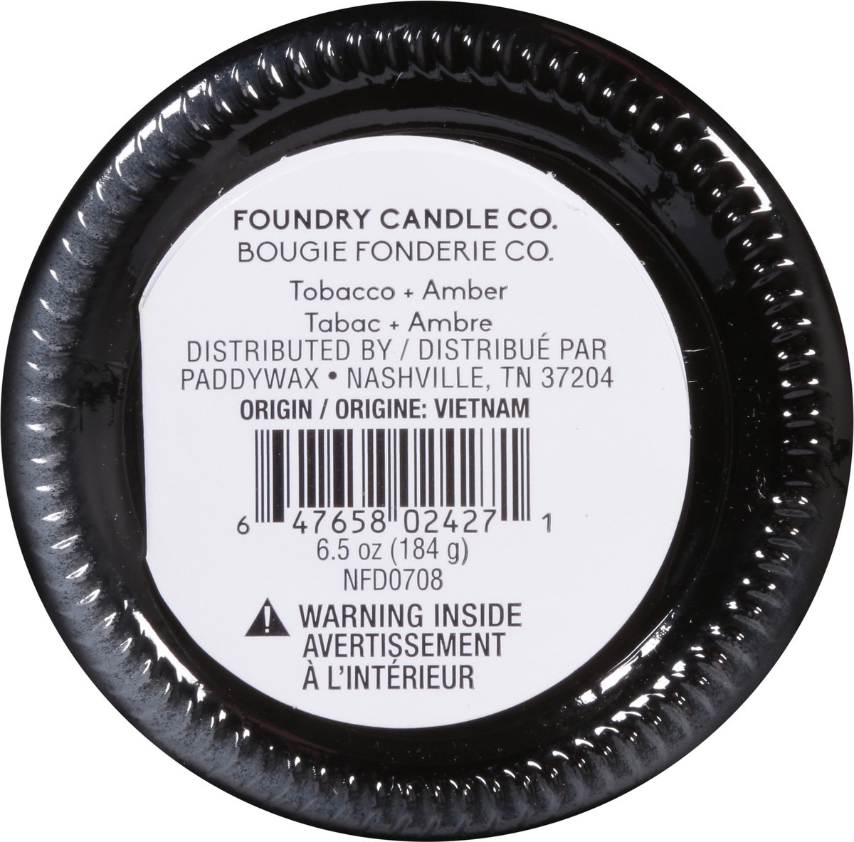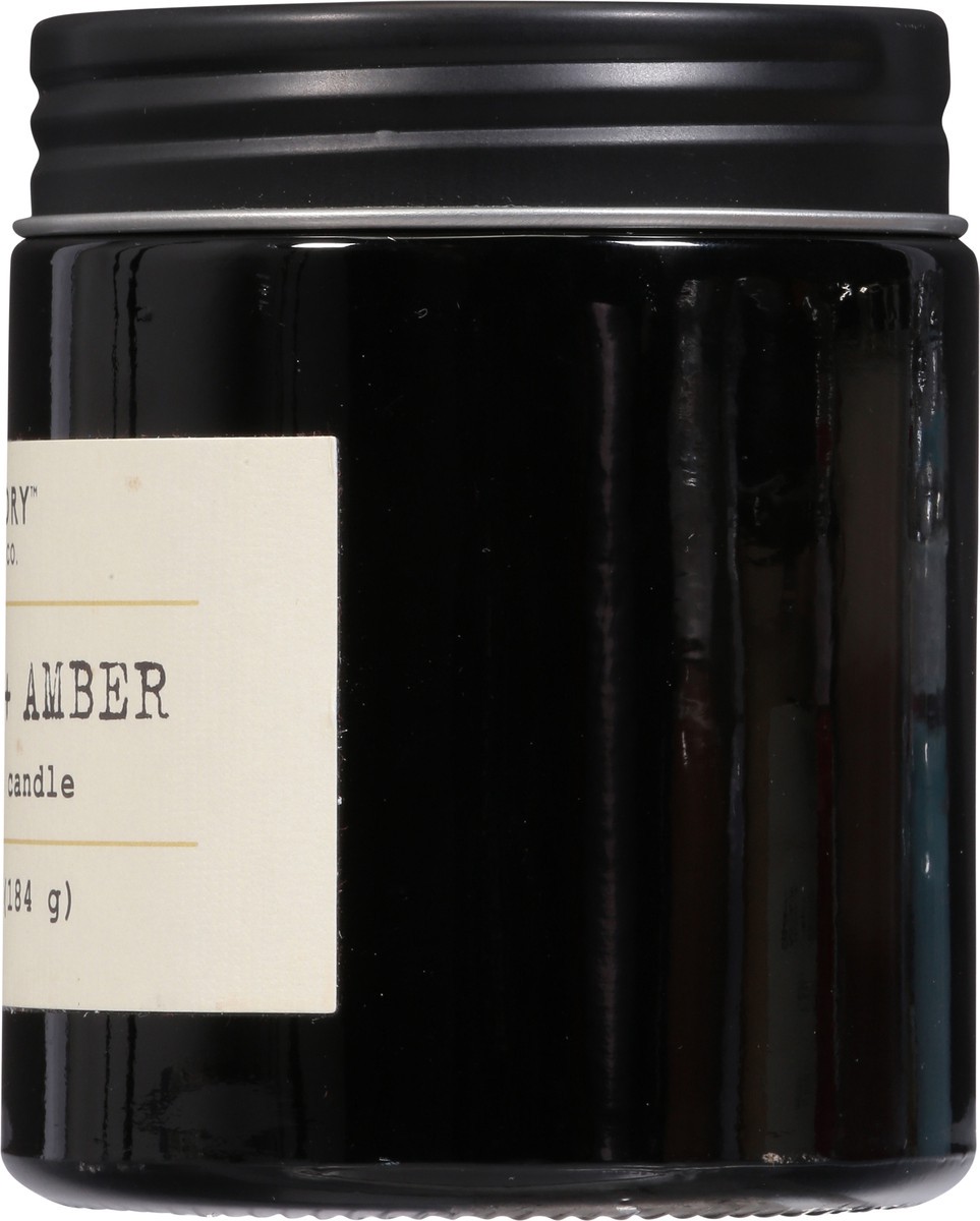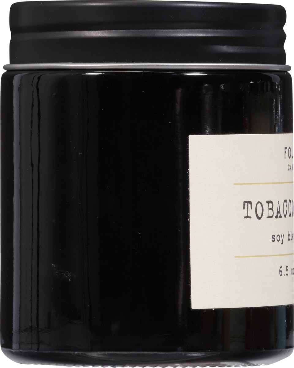 Foundry's Tobacco + Amber 6.5 oz. soy-wax blended candle with a cotton wick features fragrance notes of tobacco, patchouli, and smoke. Our transparent black glass jar with a screw on matte black lid i…