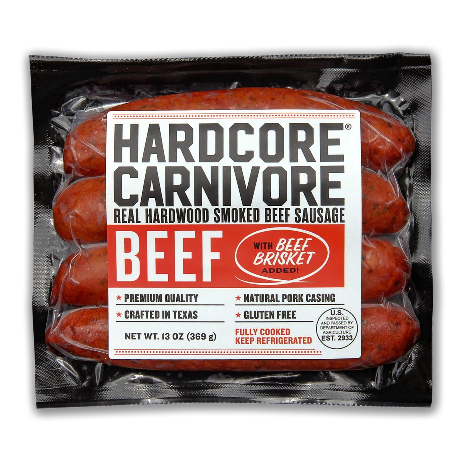 The Texan tradition of smoked sausage just got a little more Hardcore. Smoked beef sausage crafted in Texas from quality beef, premium spices and smoked with real Hickory hardwood for maximum flavor.T…