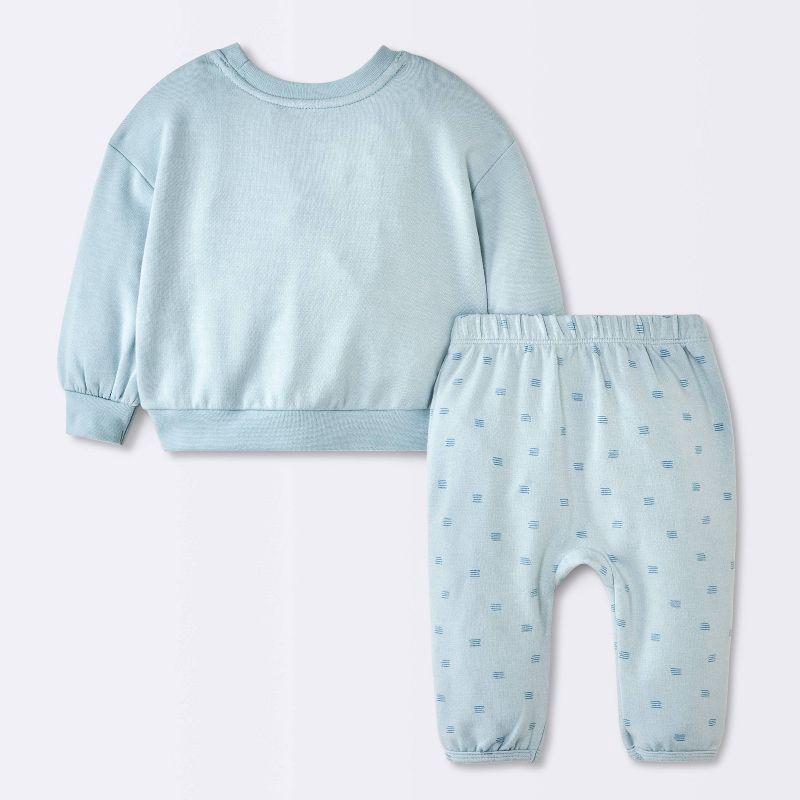 Baby Boys' 2pc Hatch Mark Graphic Modal French Terry Sweatshirt and Pants Set - Cloud Island™ Light Blue 18M