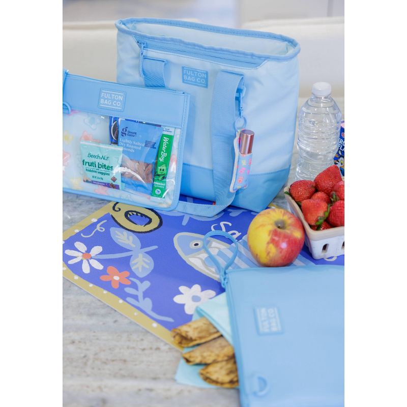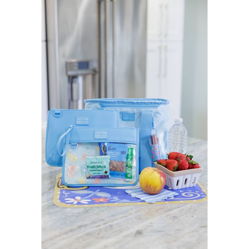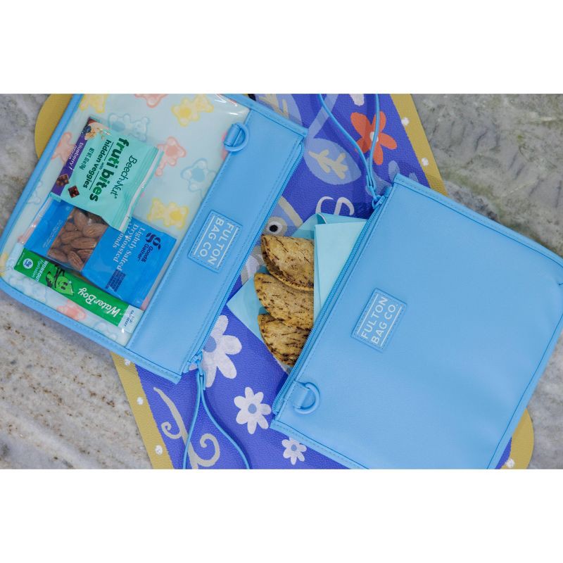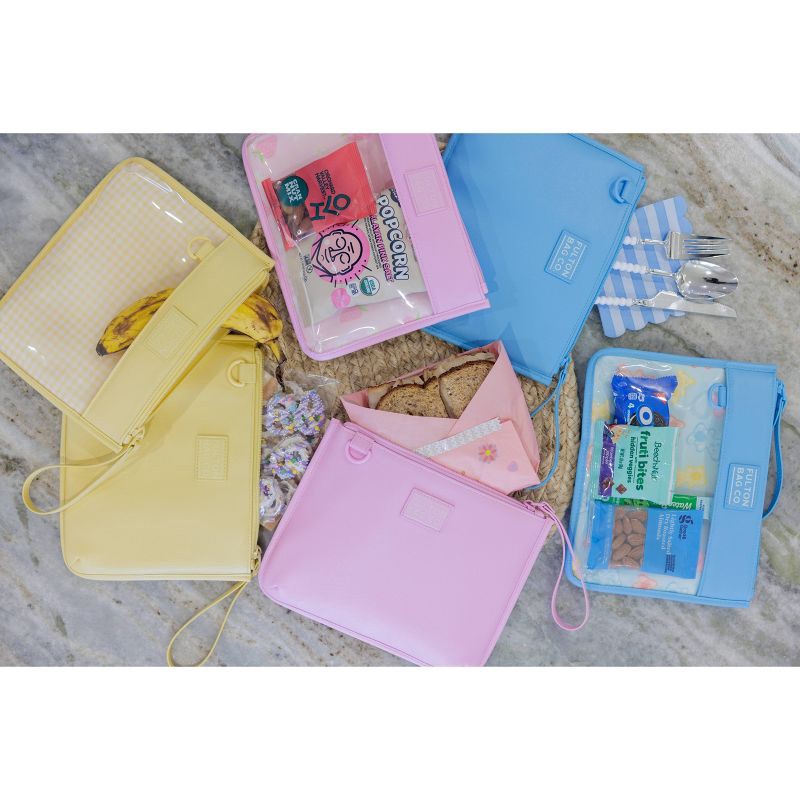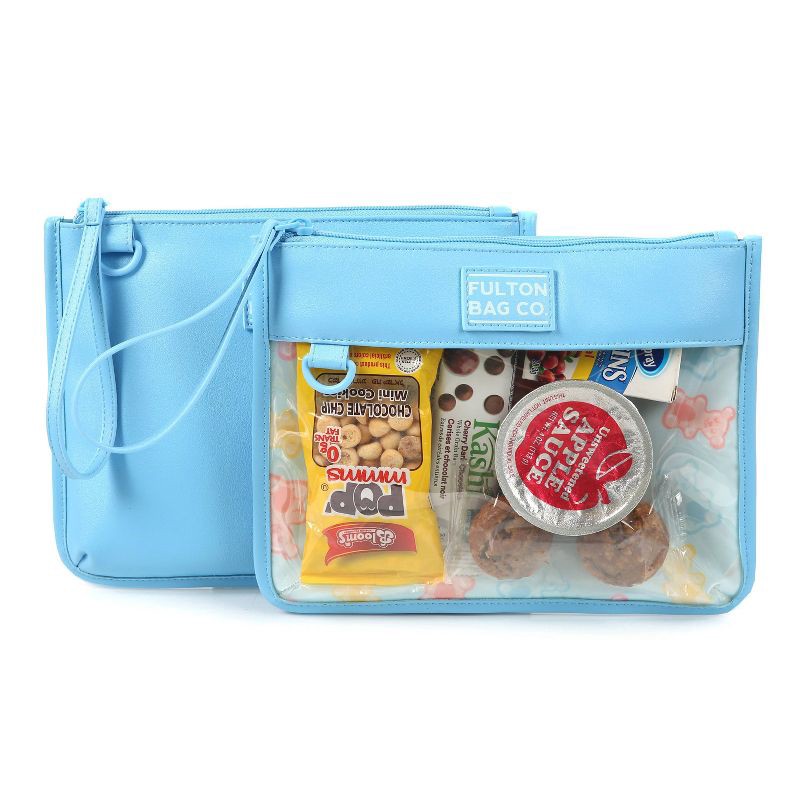 This set of two Fulton Bag. Co. snack pouches includes two insulated pouches. The vegan leather exterior can easily be wiped clean with a damp cloth and features a wristlet for easy carrying. The inte…