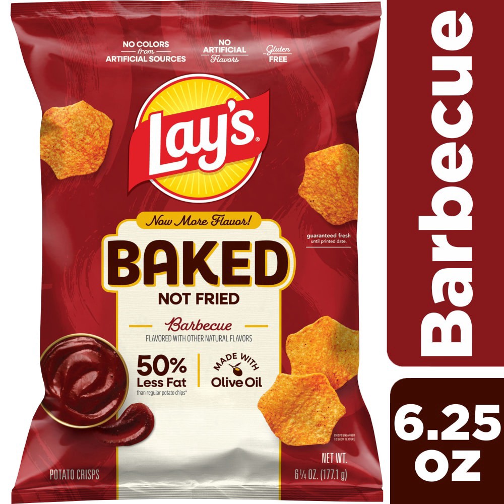 Frito-Lay's line of Oven Baked snacks are baked, not fried, to give you the great taste you've come to love with Frito-Lay snacks. On top of that, LAY'S Oven Baked Barbecue Flavored Potato Crisps have…