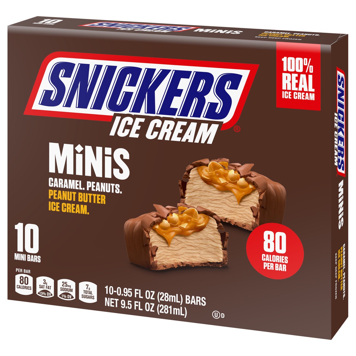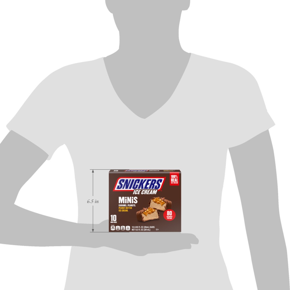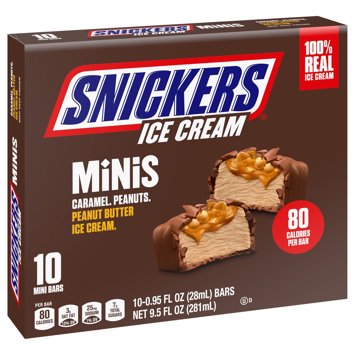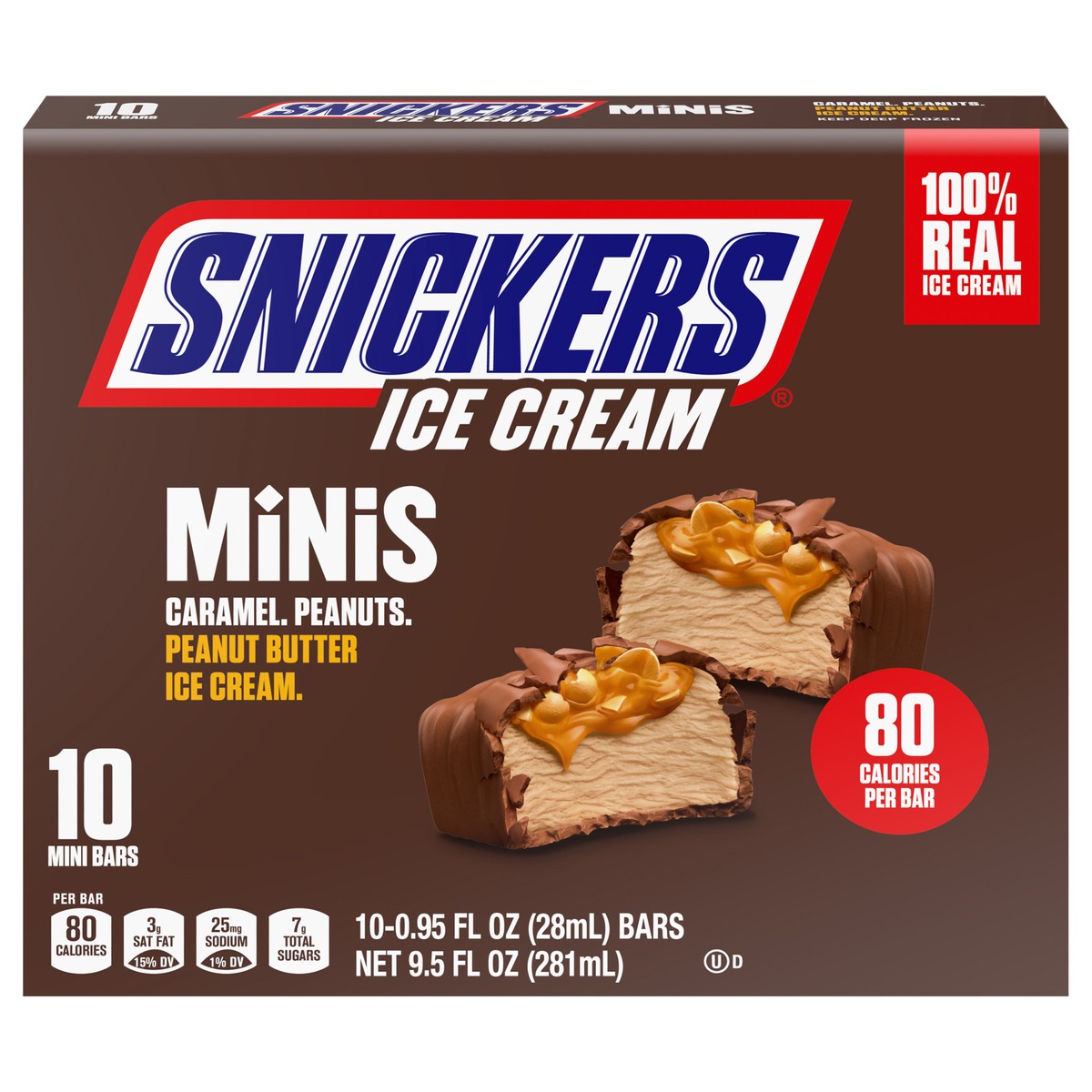 • 10-count pack of SNICKERS Minis Milk Chocolatey Ice Cream BarsClassic SNICKERS taste—creamy ice cream