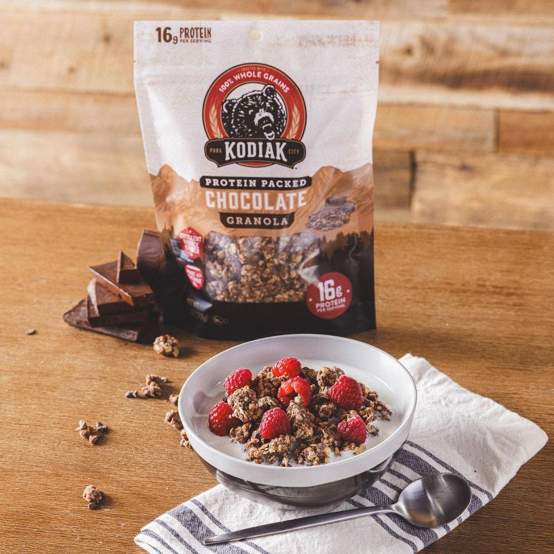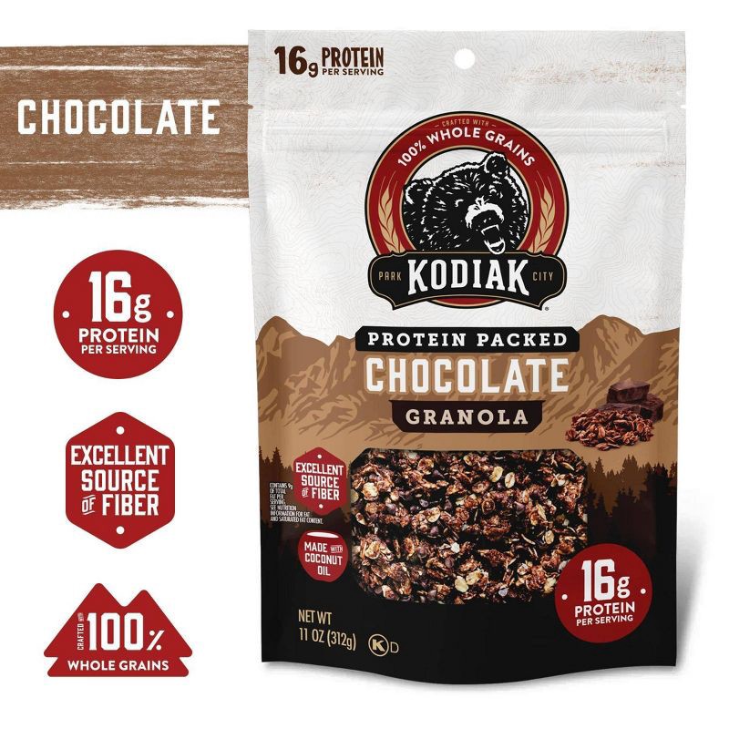 Kodiak Chocolate Granola is the quick, protein-packed fuel you need before your next adventure. Craving a delicious crunch with your yogurt? Use this chocolate granola as a topping. Want a protein sna…