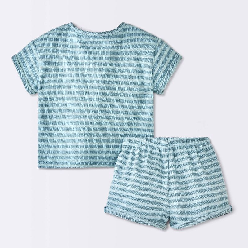 Get them ready for the day with ease with the Baby 2-Piece Striped Henley T-Shirt and Shorts Set from Cloud Island™. This adorable outfit set includes a short-sleeve henley tee and matching shorts, bo…