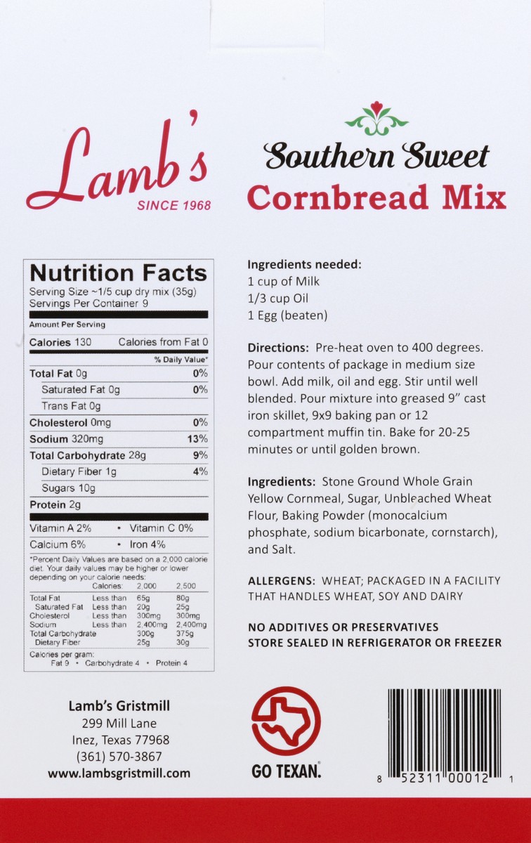 Lamb's Sweet Southern Cornmeal is made with their famous stone ground cornmeal giving this cornbread a nice corn flavor. With just the right amount of sugar, this cornbread is perfect to be paired wit…