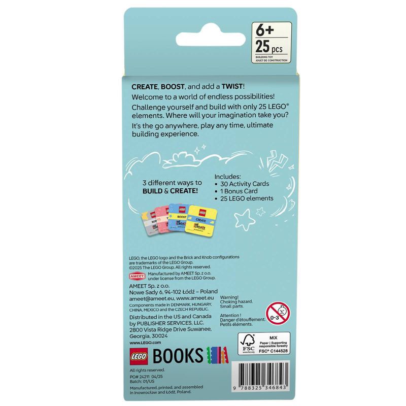 - CREATE, BOOST, AND ADD A TWIST! - With 3 different ways to play, this, pocket-sized set contains 30+ cards, 25 LEGO® elements and provides multiple, fun building challenges