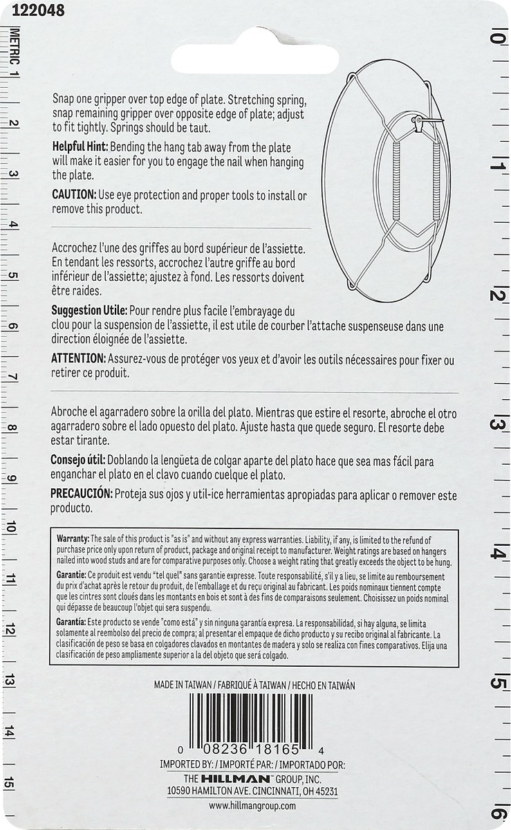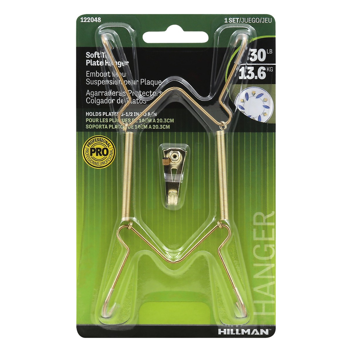 Hillman Plate Hangers secure decorative plates on walls. Ideal for drywall and plaster walls this hanger will ensure that your wall hanging project looks great. Includes a 30lb professional brass pict…