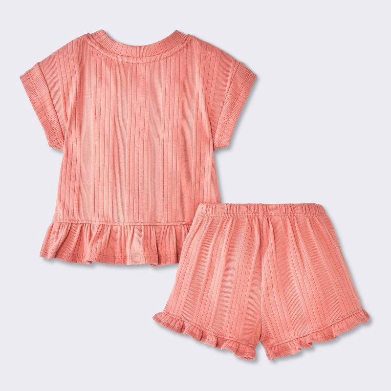 Baby Girls' 2pc Peplum T-Shirt and Ruffle Shorts Set - Cloud Island™ Pink 24M