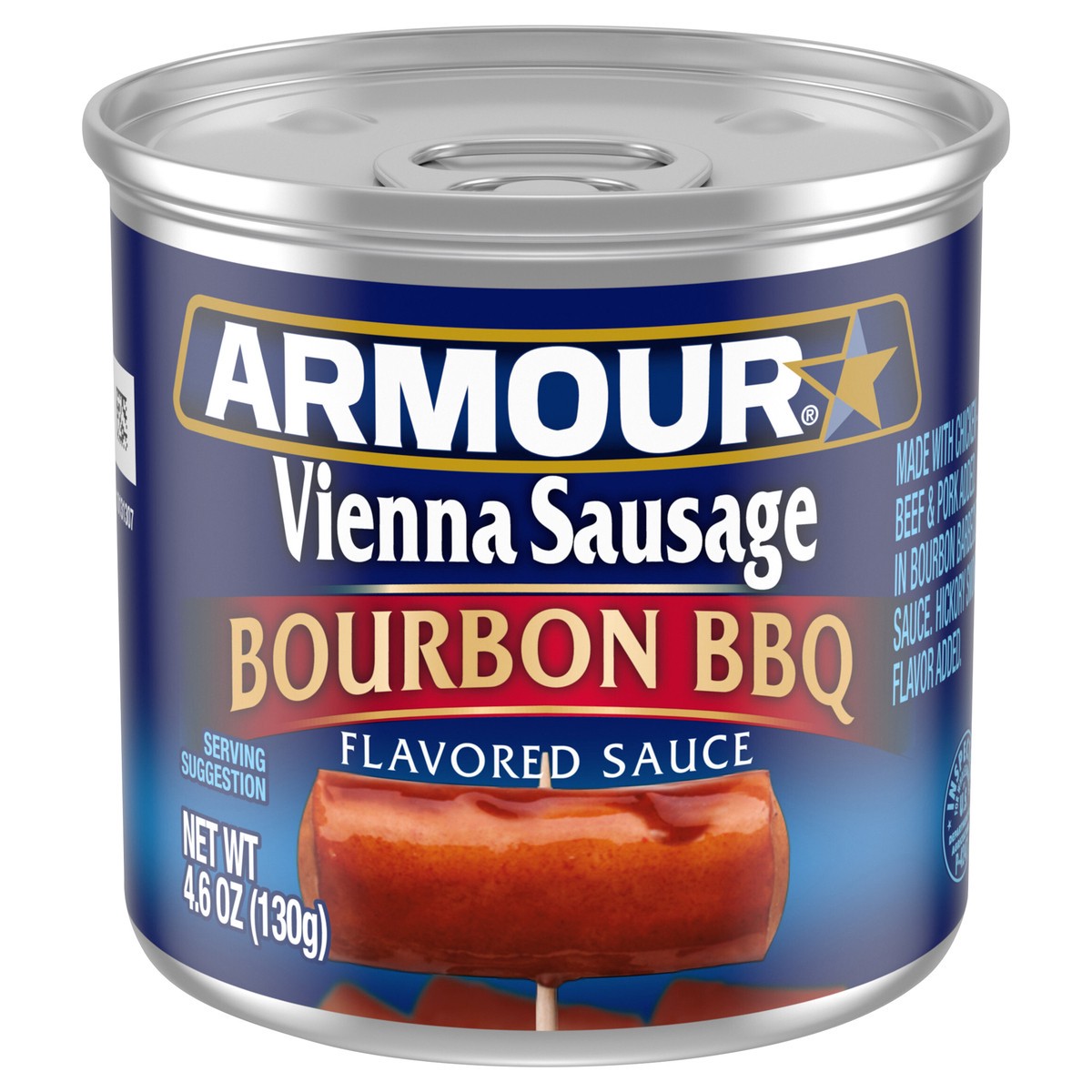 Armour Star Bourbon Barbecue Flavored Vienna Sausage are ready to eat sausages with great flavor. The Vienna sausages are made with chicken, have beef and pork added and include a bourbon barbecue sau…