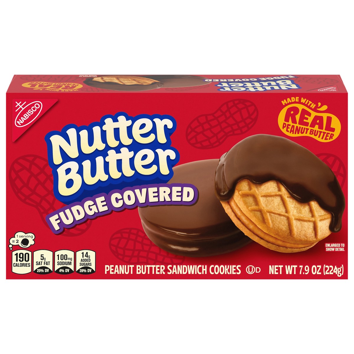 NUTTER BUTTER Fudge Covered Peanut Butter Sandwich Cookies, 7.9 oz