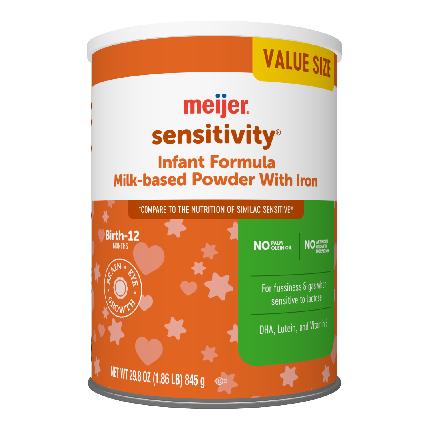 Meijer Sensitivity Infant Formula Milk-Based Powder With Iron; For Fussiness And Gas When Sensitive To Lactose; Dha, Vitamin E And Lutein; No Artificial Growth Hormones, 32.9oz