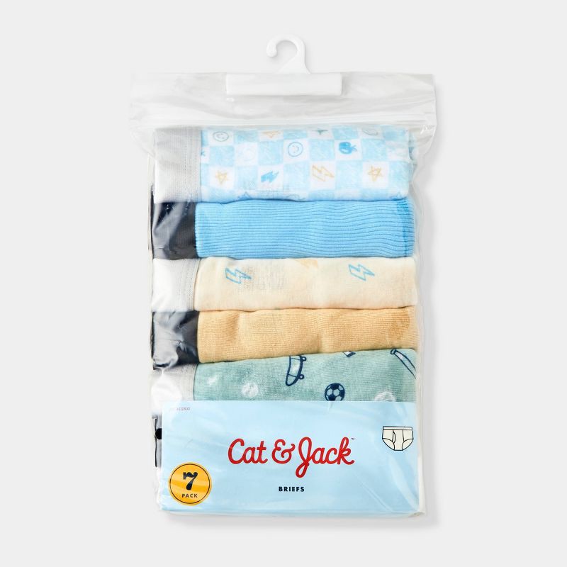 Stock up on everyday comfort with the Toddler Boys' 7pk Doodle Briefs from Cat & Jack™. Made from lightweight knit fabric with an opaque finish, these briefs offer soft, breathable comfort for all-day…