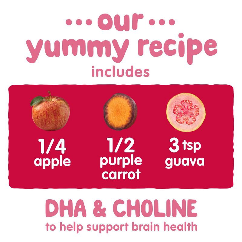 Organic Apple Puree, Organic Purple Carrot Puree, Organic Guava Puree, Organic Orange Puree, <2% of: Choline Bitartrate, DHA Algal Oil, Organic Lemon Juice Concentrate, Ascorbic Acid (Vitamin C).