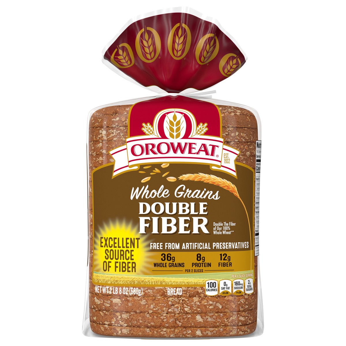 - Oroweat Whole Grains Double Fiber Bread is free from artificial preservatives