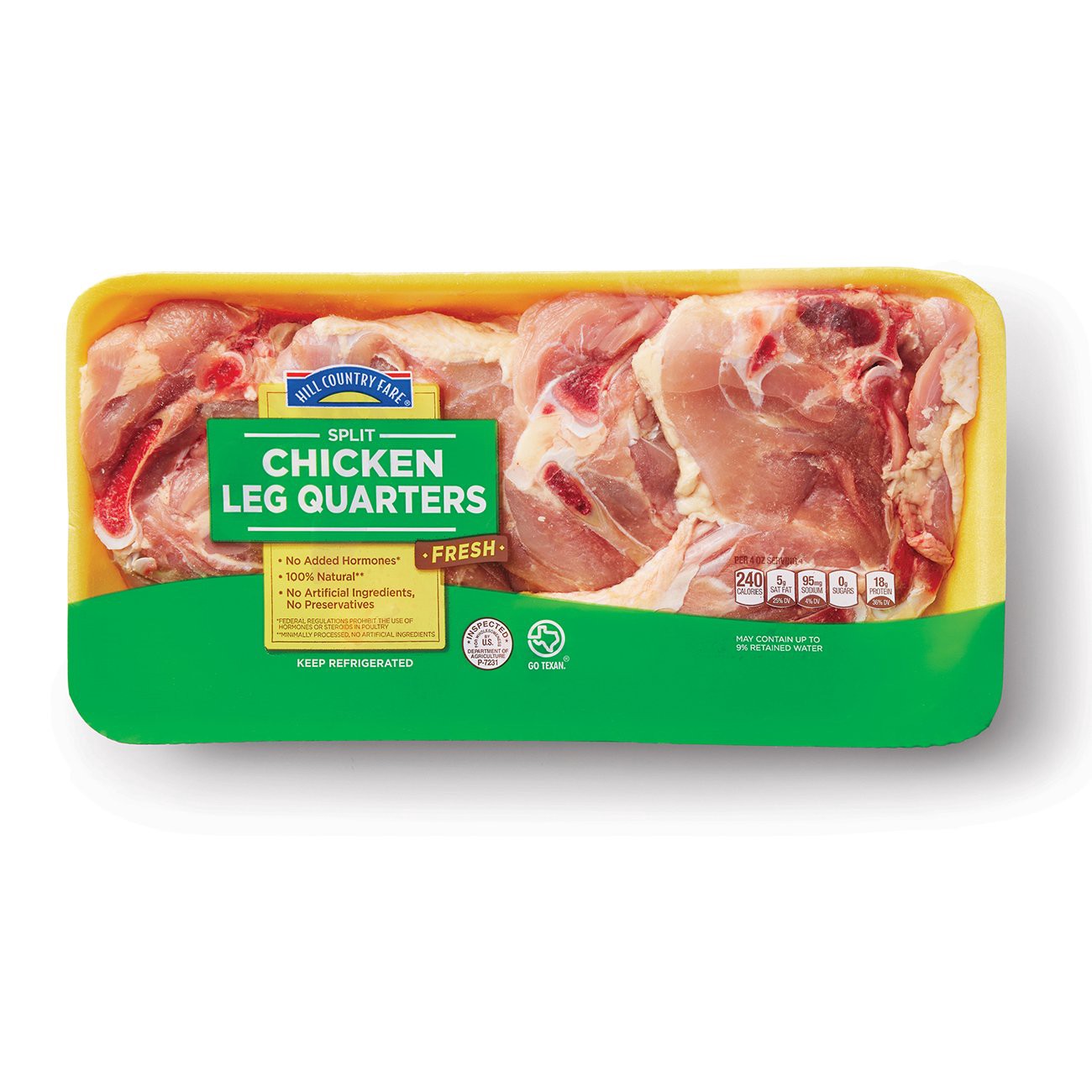 Made up of the thigh, drumstick and part of the back, these Hill Country Fare chicken leg quarters are split in half for a quicker cook time and ease. Moist and flavored-packed, this dark meat cut of …