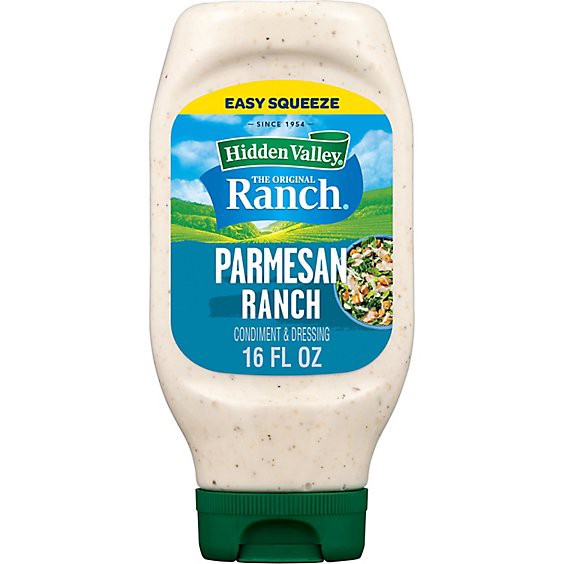 Give every meal more delicious flavor with Hidden Valley Parmesan Ranch Dressing. Made with real parmesan and Hidden Valley''s secret blend of herbs and spices, this thick and creamy dressing is a fam…