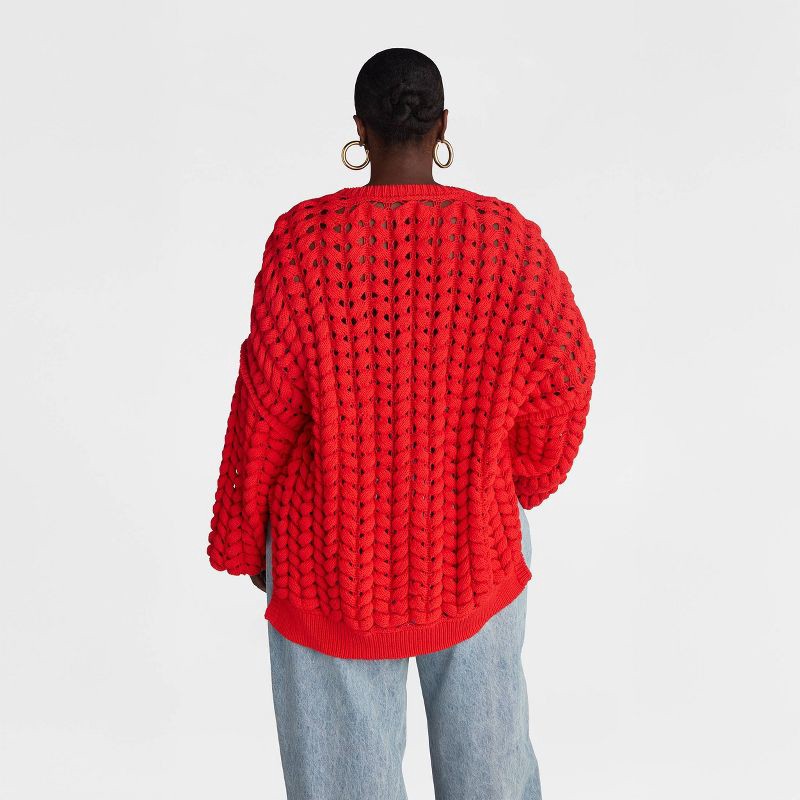 slide 1 of 3, KBB by KAHLANA Women's Pullover Sweater 'The Chunky Knit Crew' - Red 1X, 1 ct
