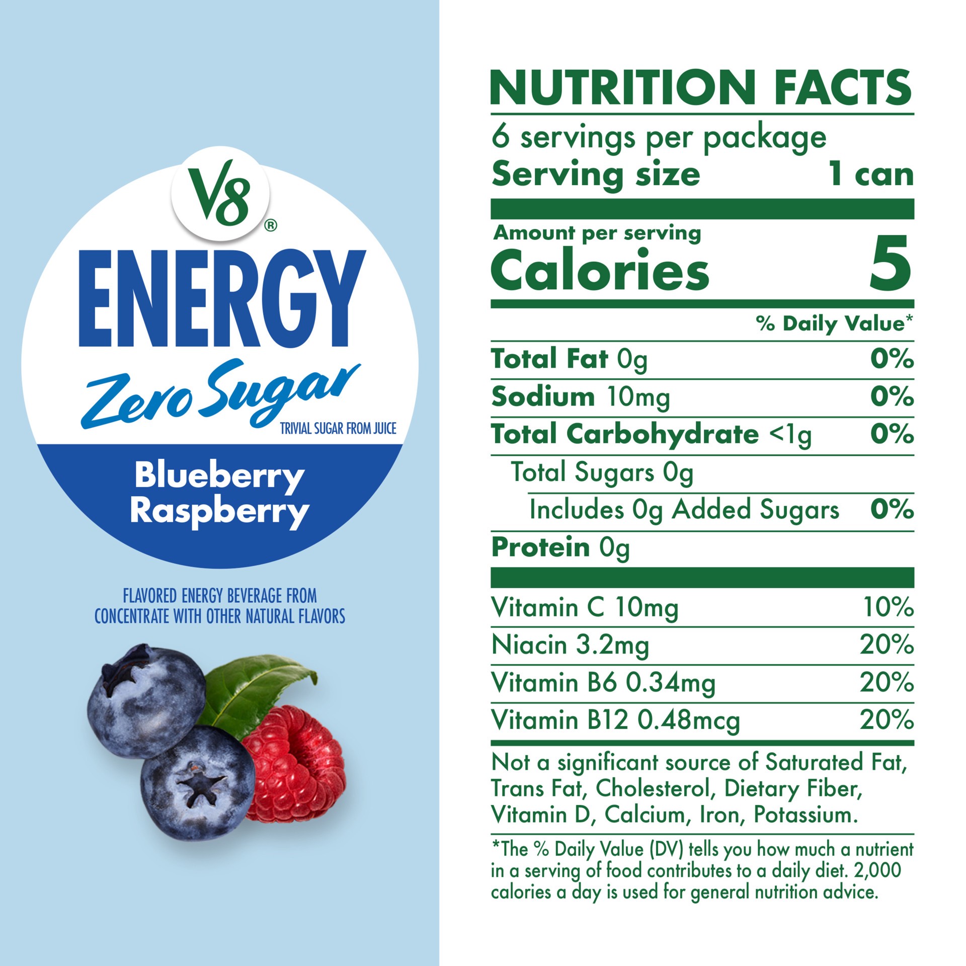 Take a moment to enjoy the refreshing taste of V8 Energy Zero Sugar Blueberry Raspberry Energy Drink. A zero sugar* energy drink designed for those who savor the moment and aim to balance work, play, …