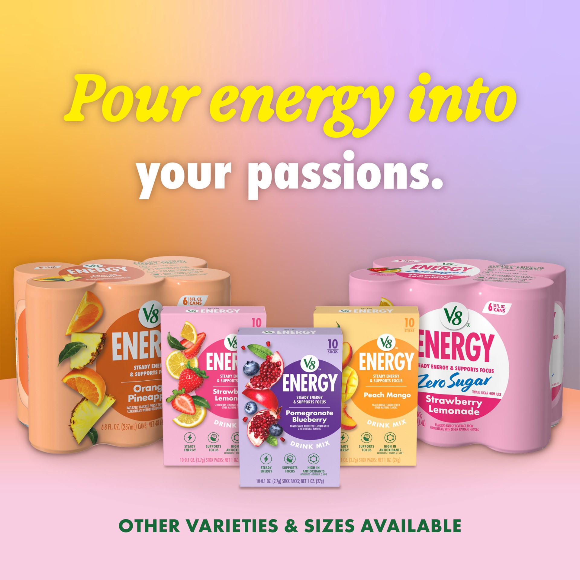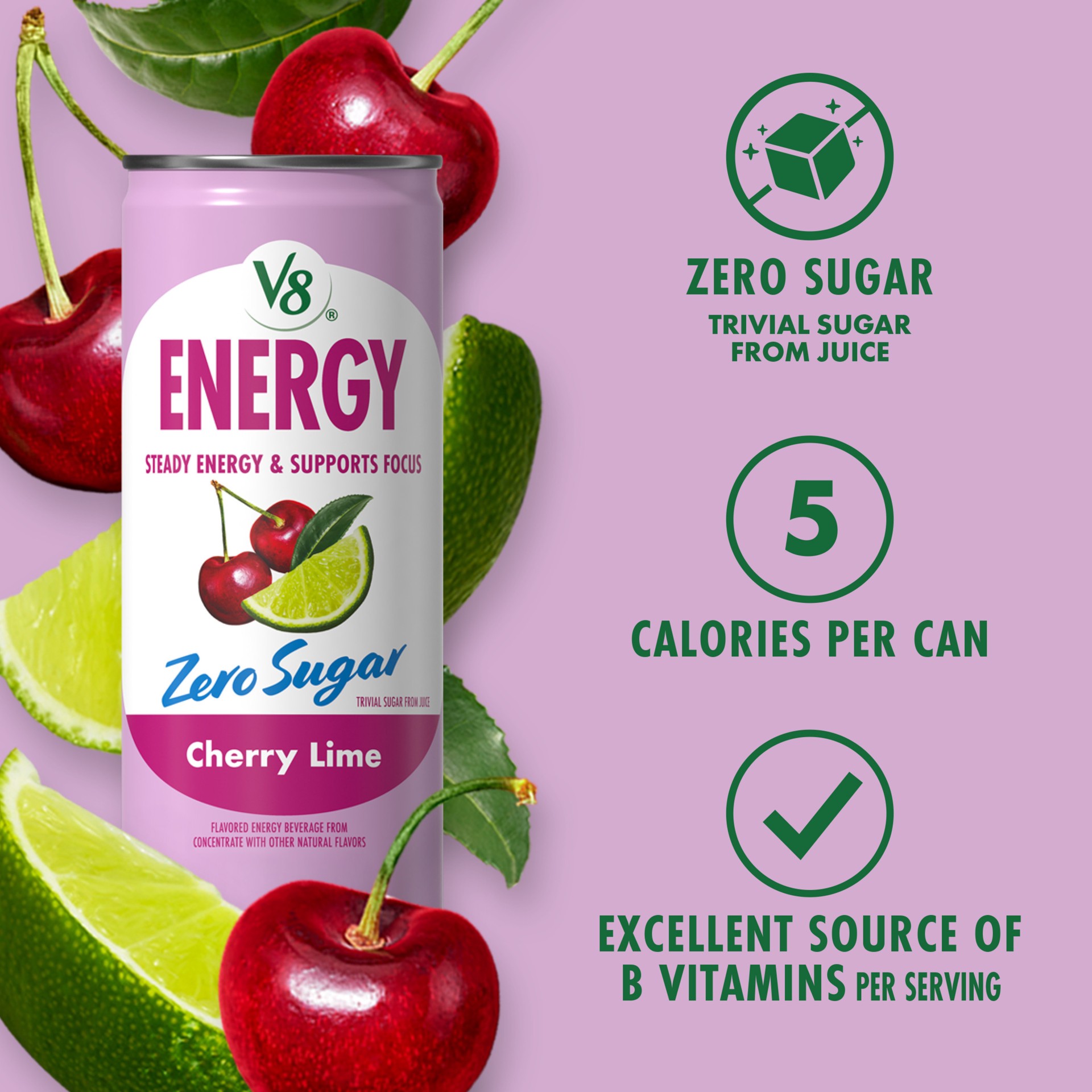 Take a moment to enjoy the refreshing taste of V8 Energy Zero Sugar Cherry Lime Energy Drink. A zero sugar* energy drink designed for those who savor the moment and aim to balance work, play, and ever…
