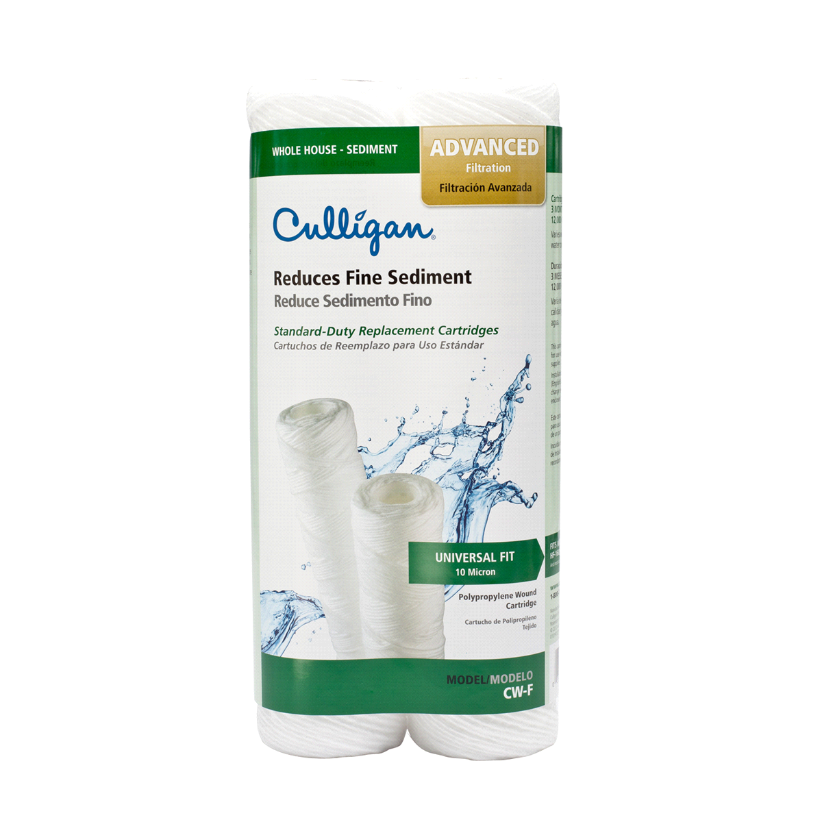 The Culligan CW-F 2-Pack Premium sediment water filter replacement cartridge filters sediment, rust, scale, dirt, course sand, sand, fine sand, and silt. The filter life 3 months or 12,000 gallons. Th…