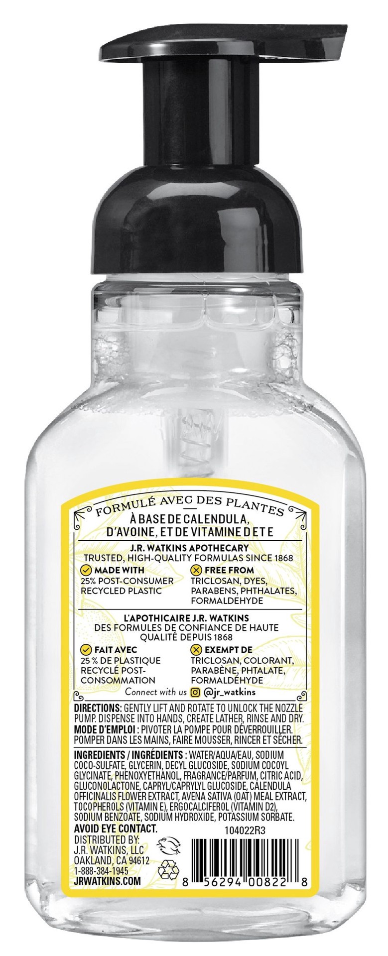 J.R. Watkins Hand Soap, Foaming, 9 Fl Oz, Lemon