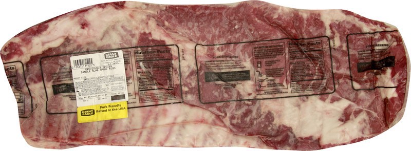 Previously frozen single slab spare ribs. Protein: 19 grams per serving. Gluten free. Natural (Minimally processed. No artificial ingredients). All natural. Our farms. Our commitment. US inspected and…