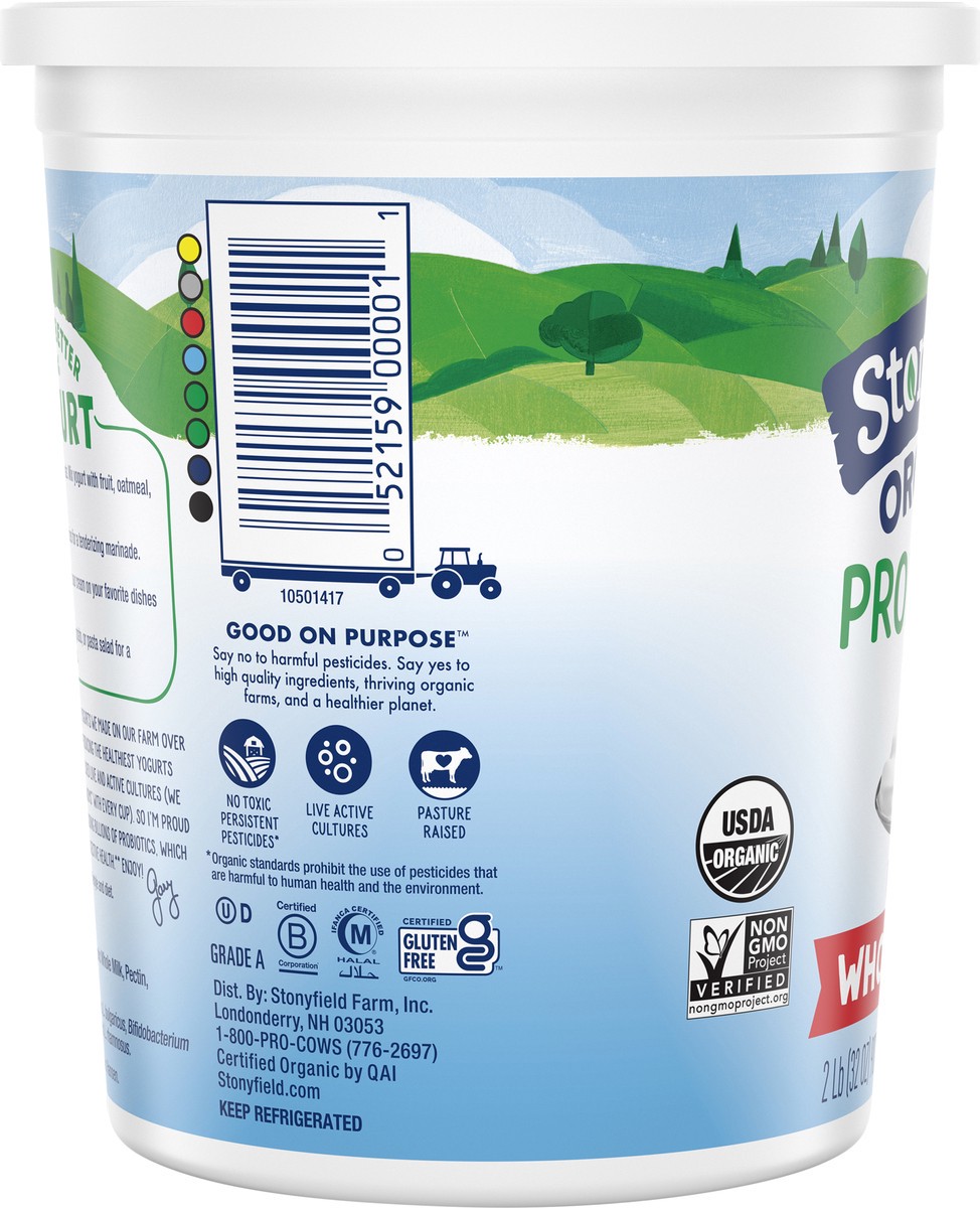 - With billions of probiotics per serving, Stonyfield Organic Whole Milk Probiotic Yogurt helps support immunity and digestive health when eaten regularly as part of a healthy lifestyle and diet