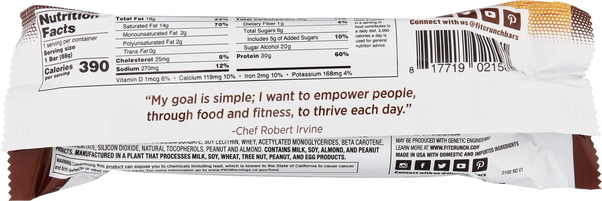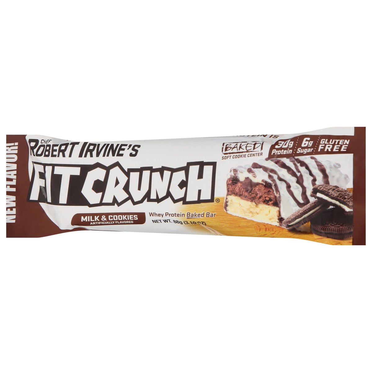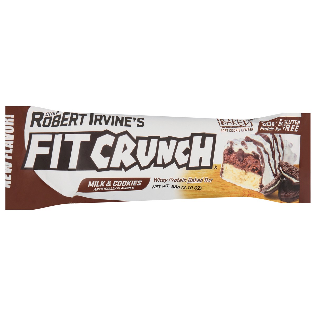 Whey protein baked bar. Artificially flavored. 30 g protein. 6 g sugar. Gluten free. May be produced with genetic engineering. New flavor! Baked soft cookie center. The only 6-layered baked bar. Whey …