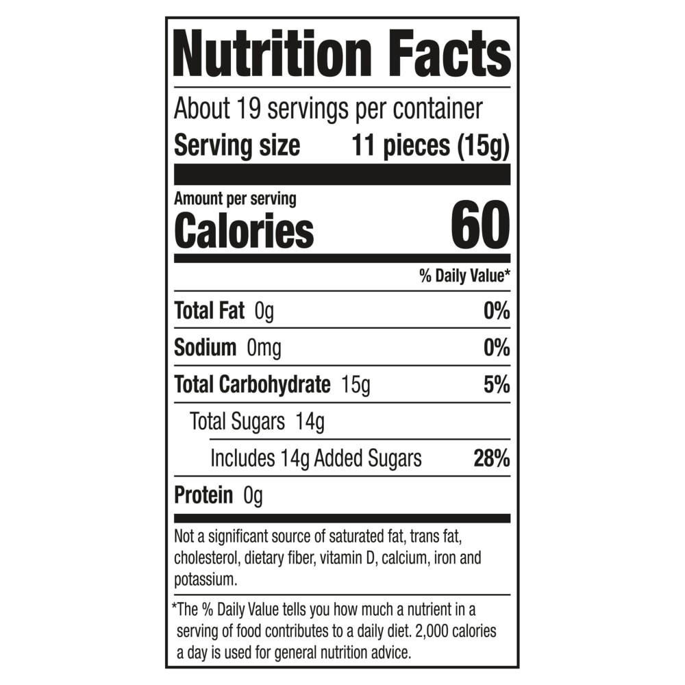 SUGAR, CORN SYRUP, DEXTROSE, GLYCERIN, GELATIN, CITRIC ACID, TRAGACANTH GUM, NATURAL AND ARTIFICIAL FLAVORS, BEET AND RIBOFLAVIN COLOR, RED 40 LAKE, BLUE 2, YELLOW 5 LAKE, YELLOW 6 LAKE, BLUE 1 LAKE.